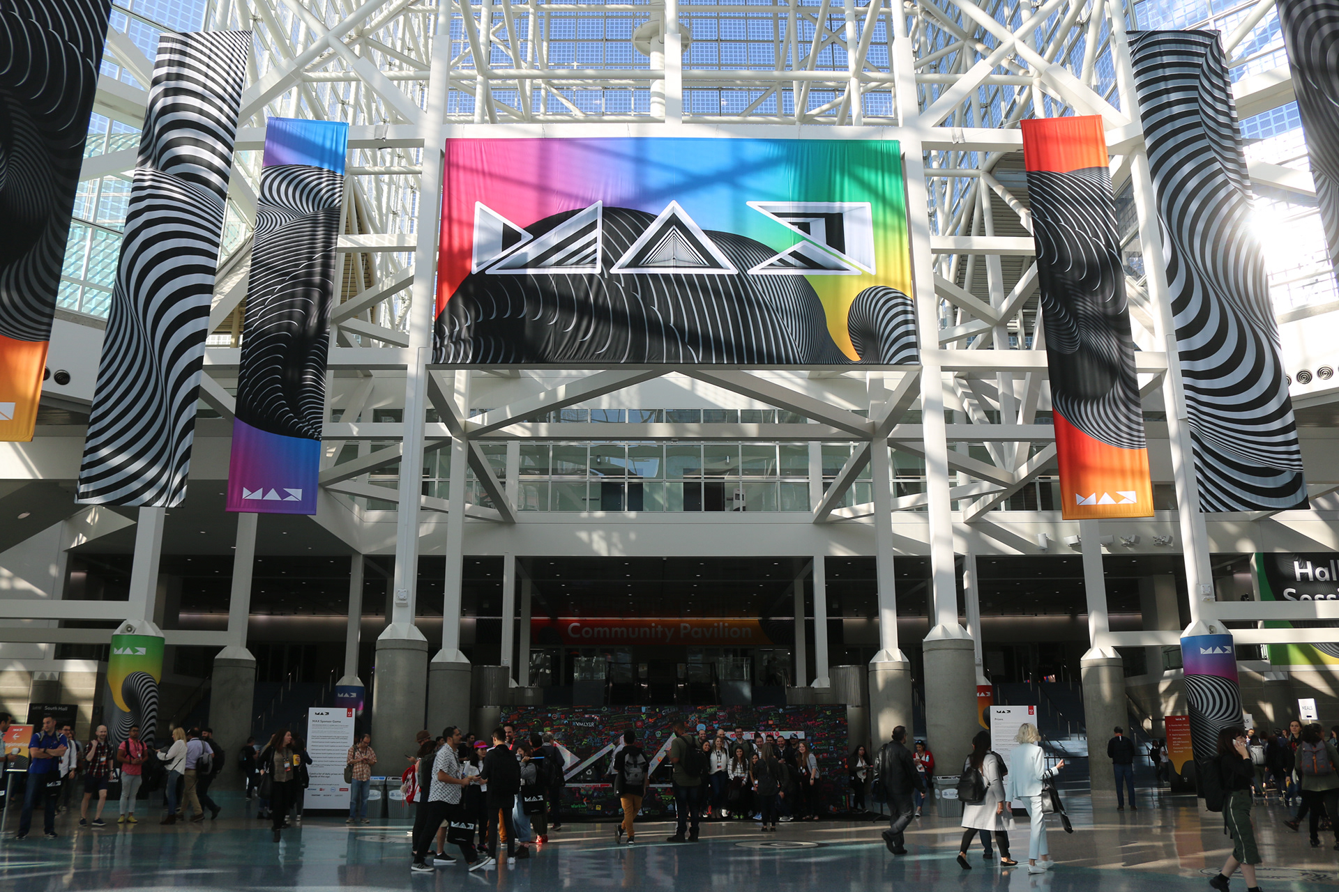 Adobe used artist Rik Oostenbroek's to establish a striking base for the event's art direction. Our team and Adobe Studio made sure to appropriately balance Rik's and MAX's bold style to establish a cohesive visual identity and experiential ecosystem for 2019 and beyond.